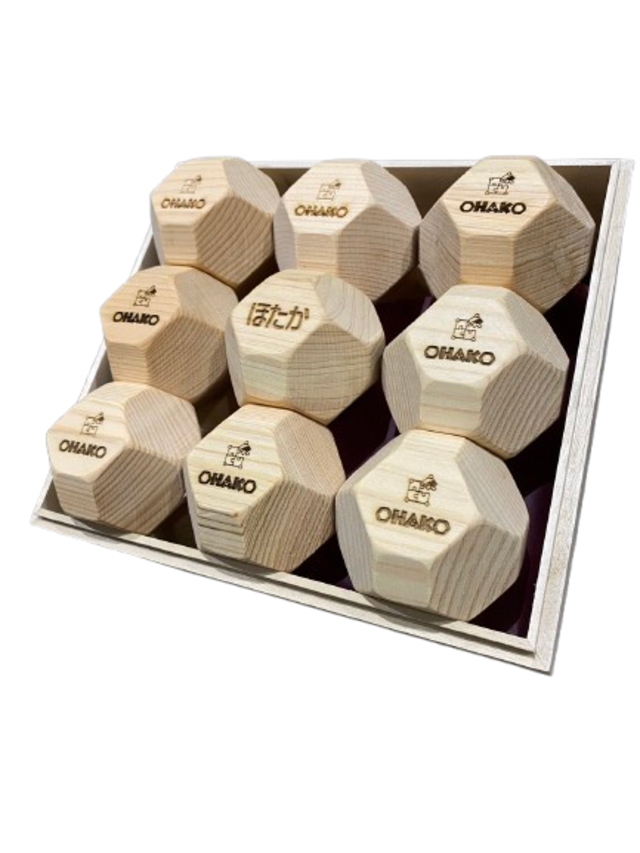■商品名/ 18面体脳トレ積み木ブロック OHAKO [オハコ] ※ノーマルOHAKOロゴ刻印バージョン ※大阪製ブランド2025年度認定商品 ―――――――――――――――――――――― ■商品内容/積み木:18個 収納用箱:1箱 ■素 材/積み木:ヒノキ(産地:関西) 収納用箱:桐 ■納期/ご注文からおよそ3営業日以内で発送(土日祝除く) ※受注生産のため、少々お時間をいただく場合がございます。 ■刻印内容/通常脳トレ積み木OHAKOのロゴ刻印 ■配送方法:佐川急便 (基本送料無料/沖縄・北海道・離島は除く) ■製造者:株式会社花岡工務店(大阪府摂津市新在家2-1-19) ―――――――――――――――――――――― ◆ 積んで、組んで、転がして、しまって。 子どもからおじいちゃんおばあちゃんまで、 家族みんなが夢中になれる「遊び」と「学び」の積み木です。 ひとつひとつの積み木に刻印を施した18個の多面体ヒノキ積み木。 積み上げたり、転がしたり、自由に発想して遊びながら、自然と脳を刺激する設計になっています。 ワクワクしながら箱を開ける瞬間も楽しさのひとつです。 ◆ 大工さんたちの手仕事から生まれました 私たちは、大阪・摂津市にある創業20年の工務店「花岡工務店」です。 普段は木造住宅のリフォームやオーダーサウナの製作、エアコン洗浄などを行っています。 この積み木は、現場帰りの大工たちが、 **“子どもも大人もワクワクするものを”**と想いを込めて、 一つひとつ丁寧に手づくりしています。 ―――――――――――――――――― ◆名前の由来は「十八番(オハコ)」 積み木18個が桐箱に入れてお届けする国産積み木です。 18面体の積み木が18個箱に入っている品だからこそ、 私たちの“十八番=OHAKO”と名付けました。 ――――――――――――――――――