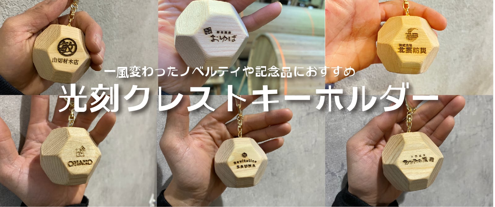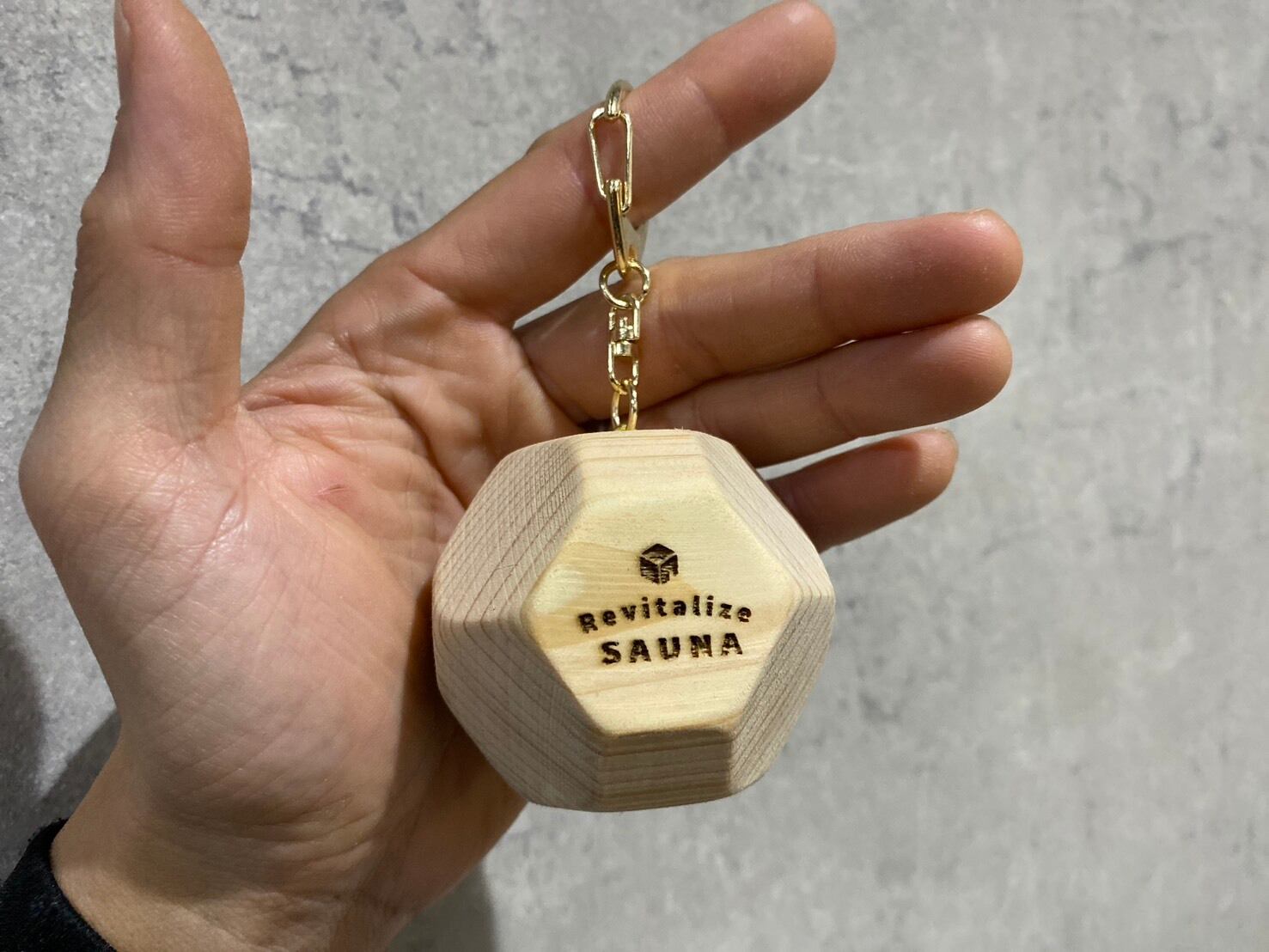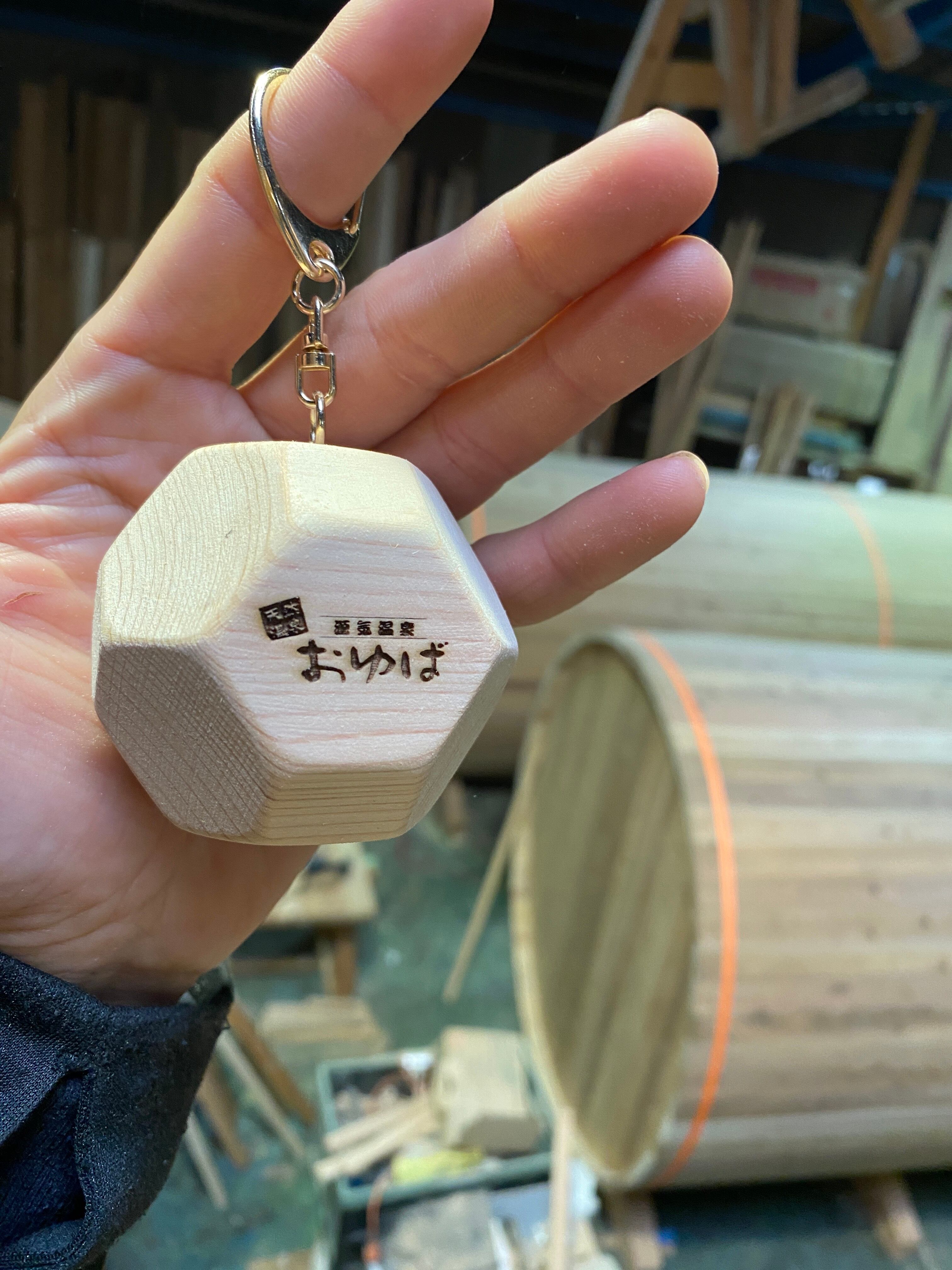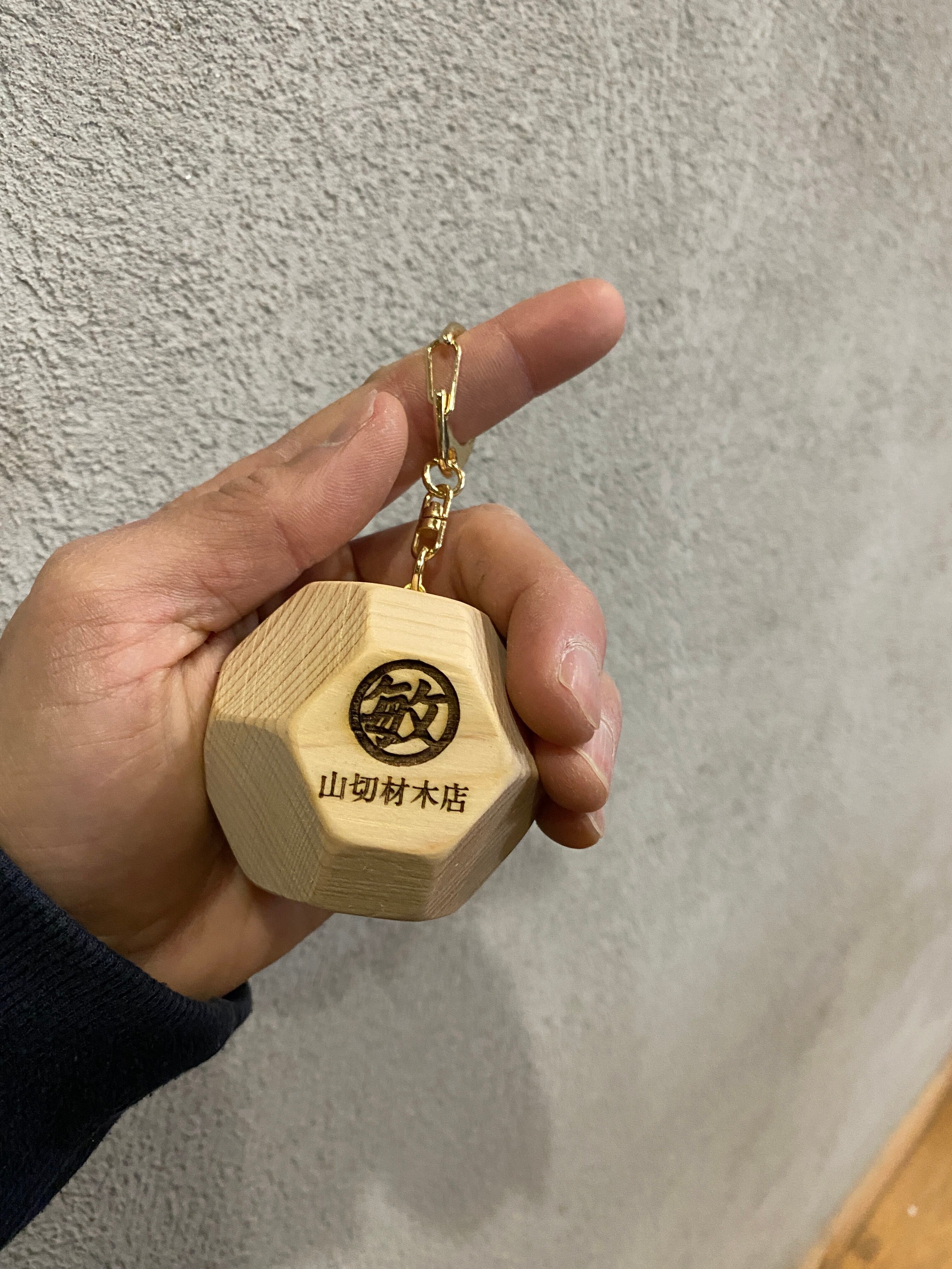 【単品販売】国産ヒノキの18面体キーホルダー (名前・ロゴなど刻印オーダー可能商品)