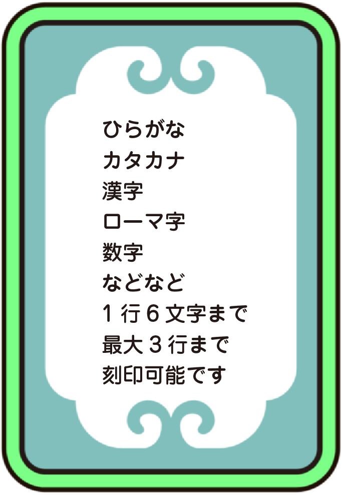 (ひらがな カタカナ 漢字 数字 ローマ字など 1行6文字最大3行迄可能)