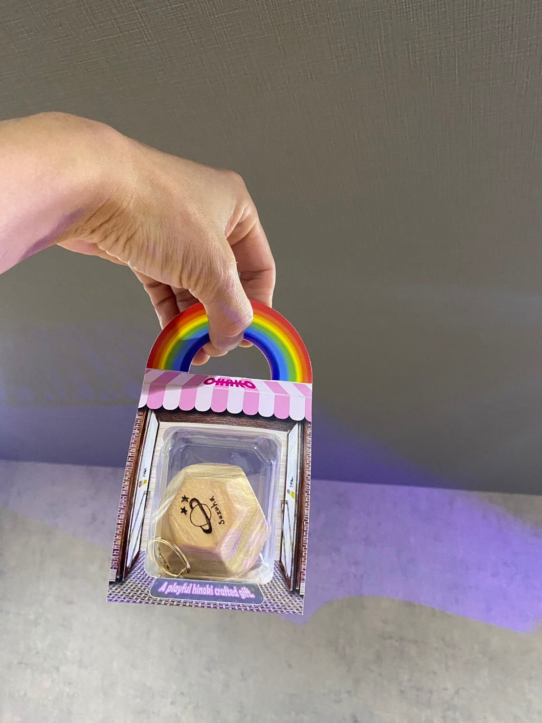 【単品販売】子どものらくがきアートキーホルダー 18面体 国産ヒノキ