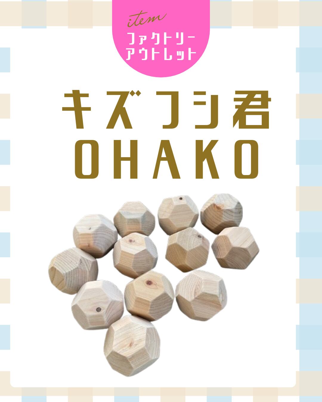 【キズフシ君】脳トレ積み木ブロックOHAKO[刻印なし ダンボール簡易梱包納品] 18個 桐箱なし 国産ヒノキの脳トレ積み木 知育玩具 送料無料